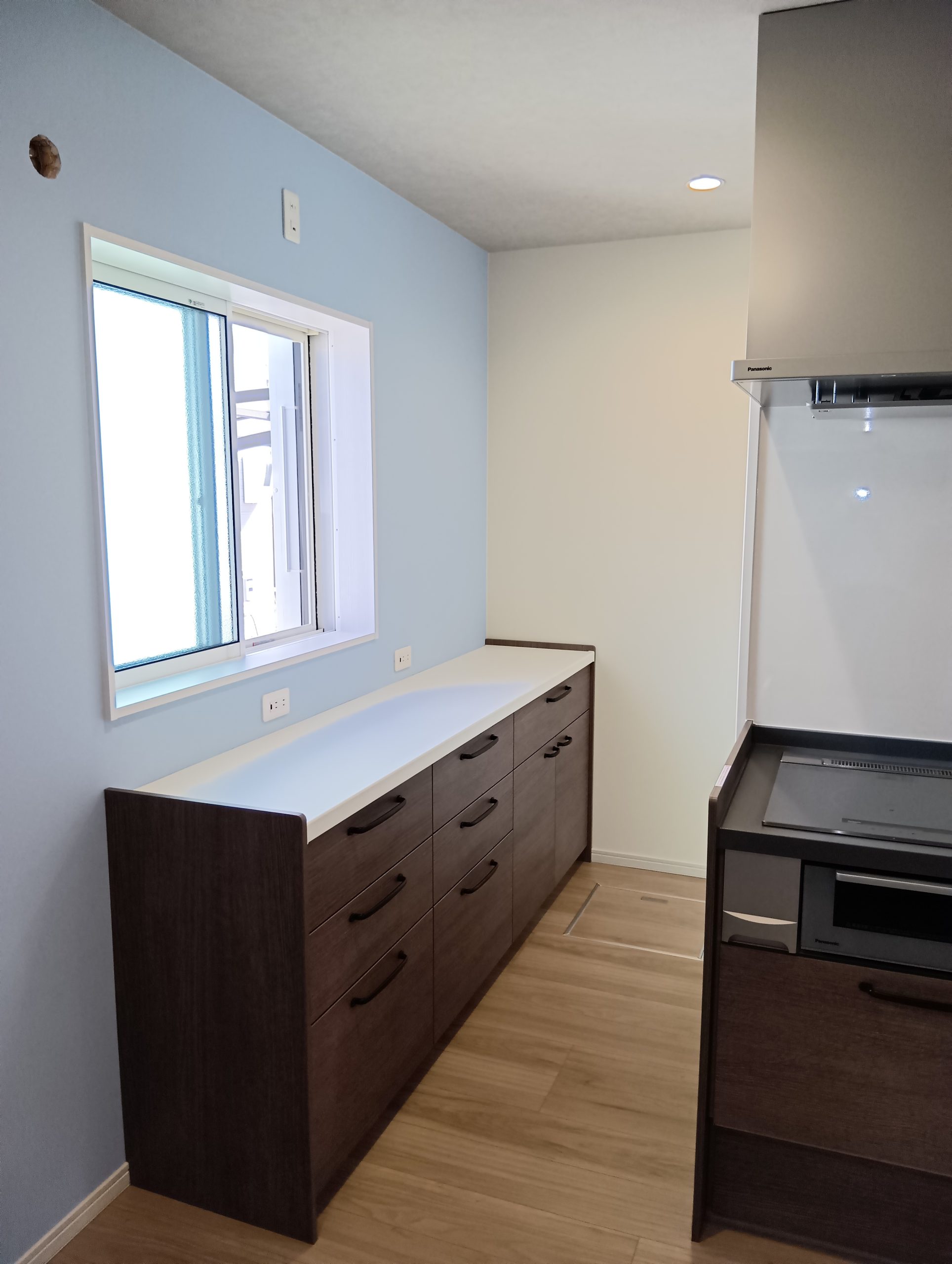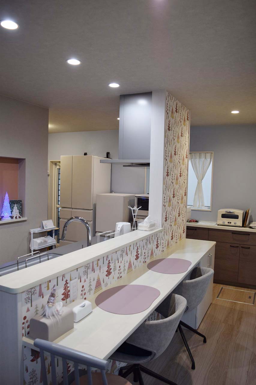 奥様がこだわり抜いた壁紙、ご家族で話し合いを重ねた機器類の選別。